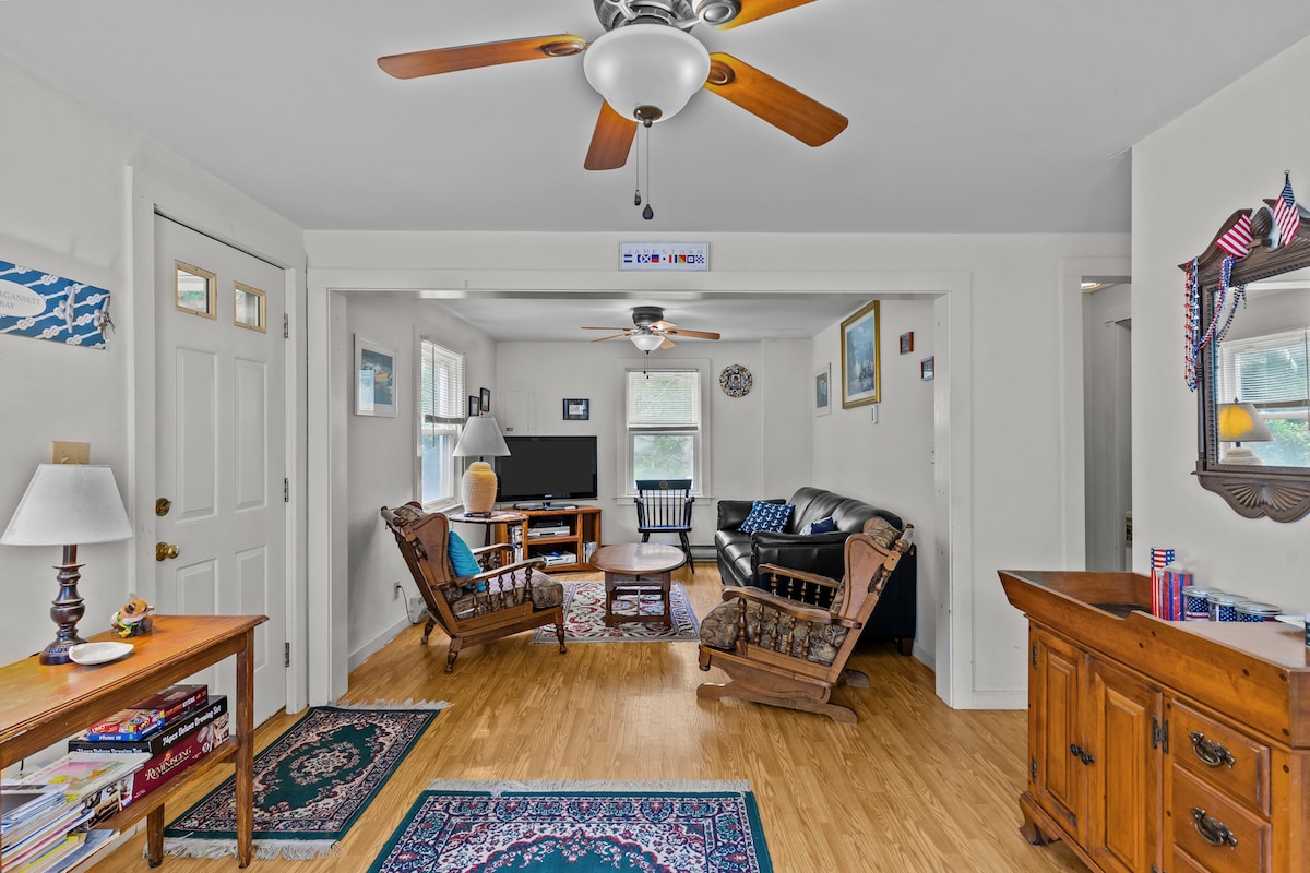 Bu, bir kvintessensial Jamestown, RI çimərlik evidir!! Narragansett Körfəzindən 4 ev və məşhur "Sunset Beach" ə 1 mil məsafədə yerləşir (beləliklə, bütün gün batımı şəkilləri), velosiped sürə və ya çimərliyə gedə, nahar/YAP üçün evə gələ və günortadan sonra və ya gün batımı kokteyllərinə qayıda bilərsiniz! Qeyd: Bu ev qışlamır - istilik sistemi yoxdur. Elektrik plintusları elektrik enerjisinə qoşulmayıb. Qonaq/yemək otağında pəncərə AC və hər yataq otağı.