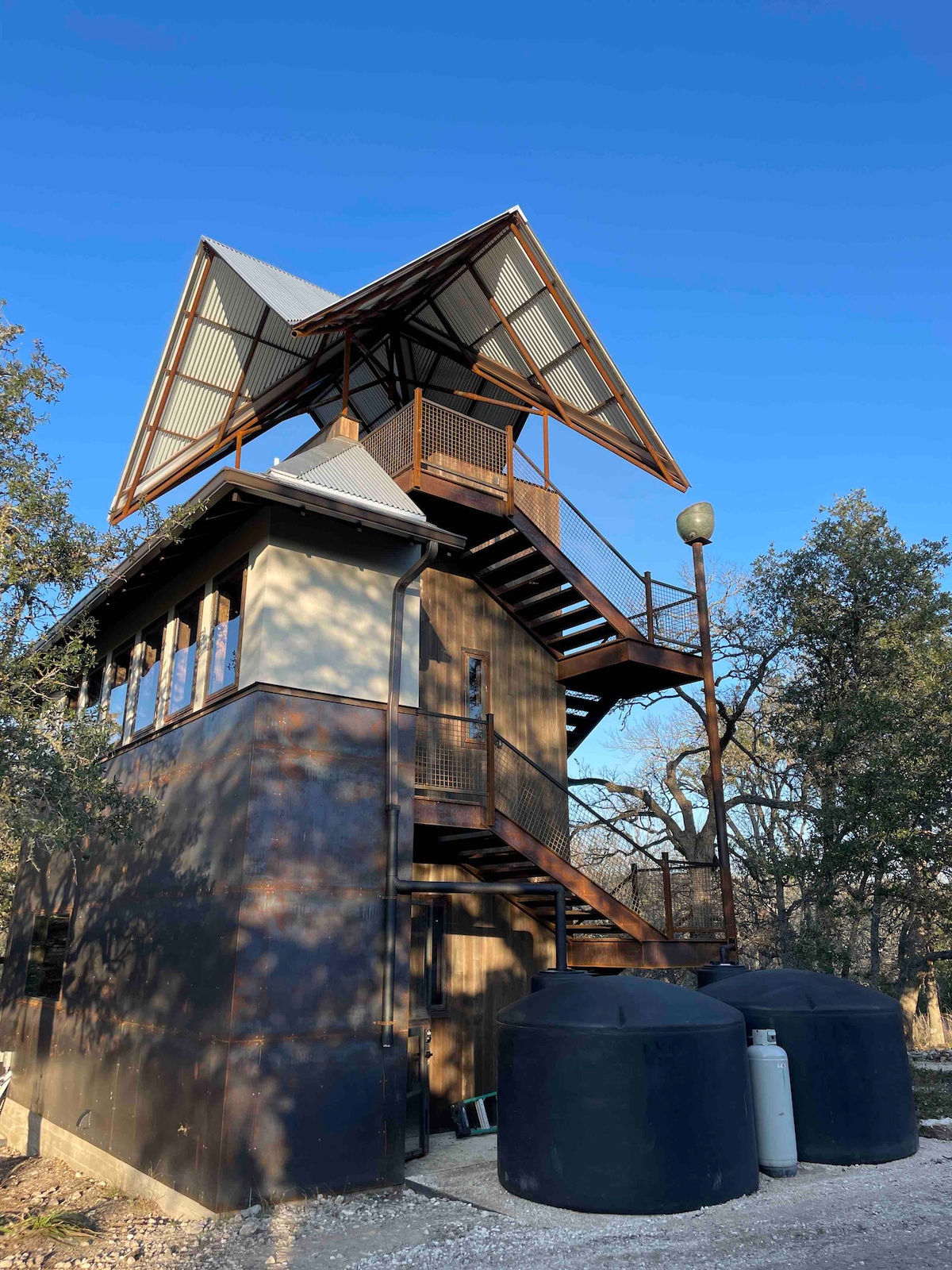 Xüsusi yerin təbii sistemləri ilə əlaqə qurmaq üçün nəzərdə tutulmuş Çerço Pedernales çayı vadisinə baxan 5 hektarlıq qayalı yamacda ağacların arasında yerləşir. Açıq havada pilləkən sistemi üç səviyyəni birləşdirir - örtülü dam örtüyü; ikinci mərtəbədəki usta süitası və birinci mərtəbə mətbəx sahəsi. Böyük Təpənin meşəlik yamaclarına açılan şüşə divarlar, Komfort və Frederiksburq arasında Pedernales və Qvadalupe su hövzələrini ayıran silsilə. Boşaltmaq və yenidən əlaqə qurmaq üçün yer.