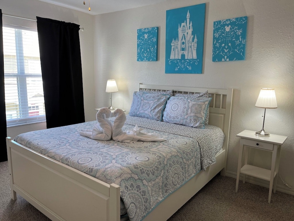 Minutes from Disney World Orlando Florida, Modern & Stylish 2bed/2bath fully equipped apartment for up to 6 guests, located in the family friendly Storey Lake Resort. FREE Clubhouse & WATERPARK amenities: Heated Pool, Hot Tub, Kids Splash Zone, Water Slides, Lazy River, Gym, Tiki Bar, Ice Cream Shop & more. The apt is located: 10 min drive to DISNEY, 25 min to UNIVERSAL STUDIOS, 18 min to SEA WORLD. FREE Parking. FREE Waterpark. No extra FEES. Gated Resort with Security 24/7 & Self check-in!