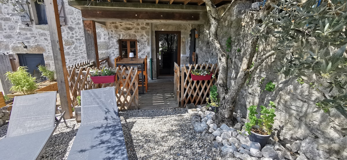 Petit studio situé en dessous de notre maison. À 3km du lac du Bourget, de l'abbaye de Hautecombe et à 10km de Chanaz. Vous pourrez profiter de magnifiques vues et de la tranquillité de la campagne. Logement ~35m2 et d'une terrasse privatisée. Une cuisine, une salle d'eau, 1 chambre et un séjour comprenant un lit canapé. Bain finlandais en supplément, privatisé soir ou journée. Voir avec nous et en fonction de nos disponibilités.