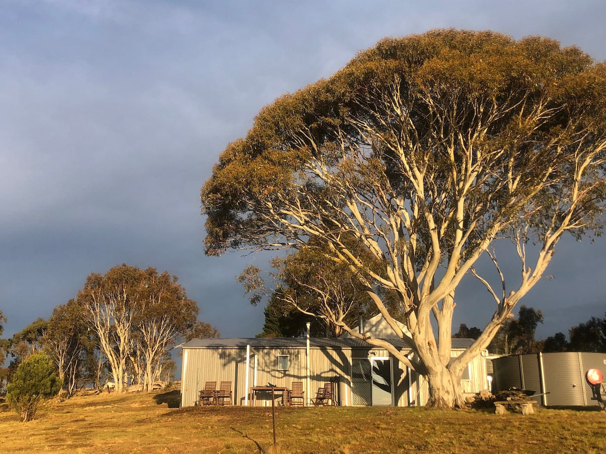Take it easy at this unique and tranquil getaway. Escape above the clouds to one of the highest landholdings in NSW, with birds eye views of the Brindabellas, Tinderry and Snowy Mountain ranges. This cosy mountain top cabin has all you need for a perfect nature escape, away from the urban stress with only the spectacular Australian bush for your compony. Expecte Spectacular sunsets and Incredible mountain range views on all sides with 100 acres of wild bush and paddock to explore.