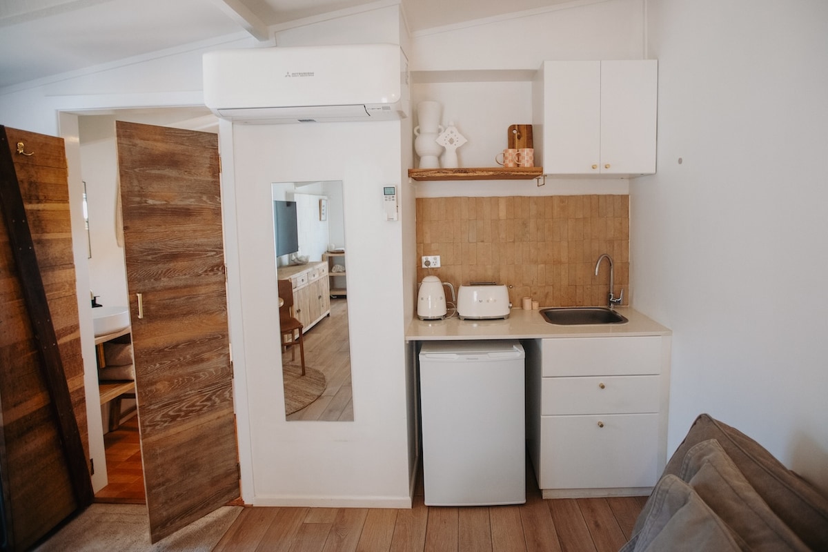 Suite for two Seafarers filled with collected treasures found beside the seaside in Coolum Beach. A self-contained private studio suite with a queen size bed, bespoke ensuite, kitchenette and lounge/daybed. Access is easy via off-street parking and a charming boardwalk leading to a sunny courtyard. Located just five minutes by car (3km) from the beautiful beaches of Coolum and close to cafes, restaurants, airport, buses, national parks and scenic coastal walks. Perfect for a relaxing getaway!