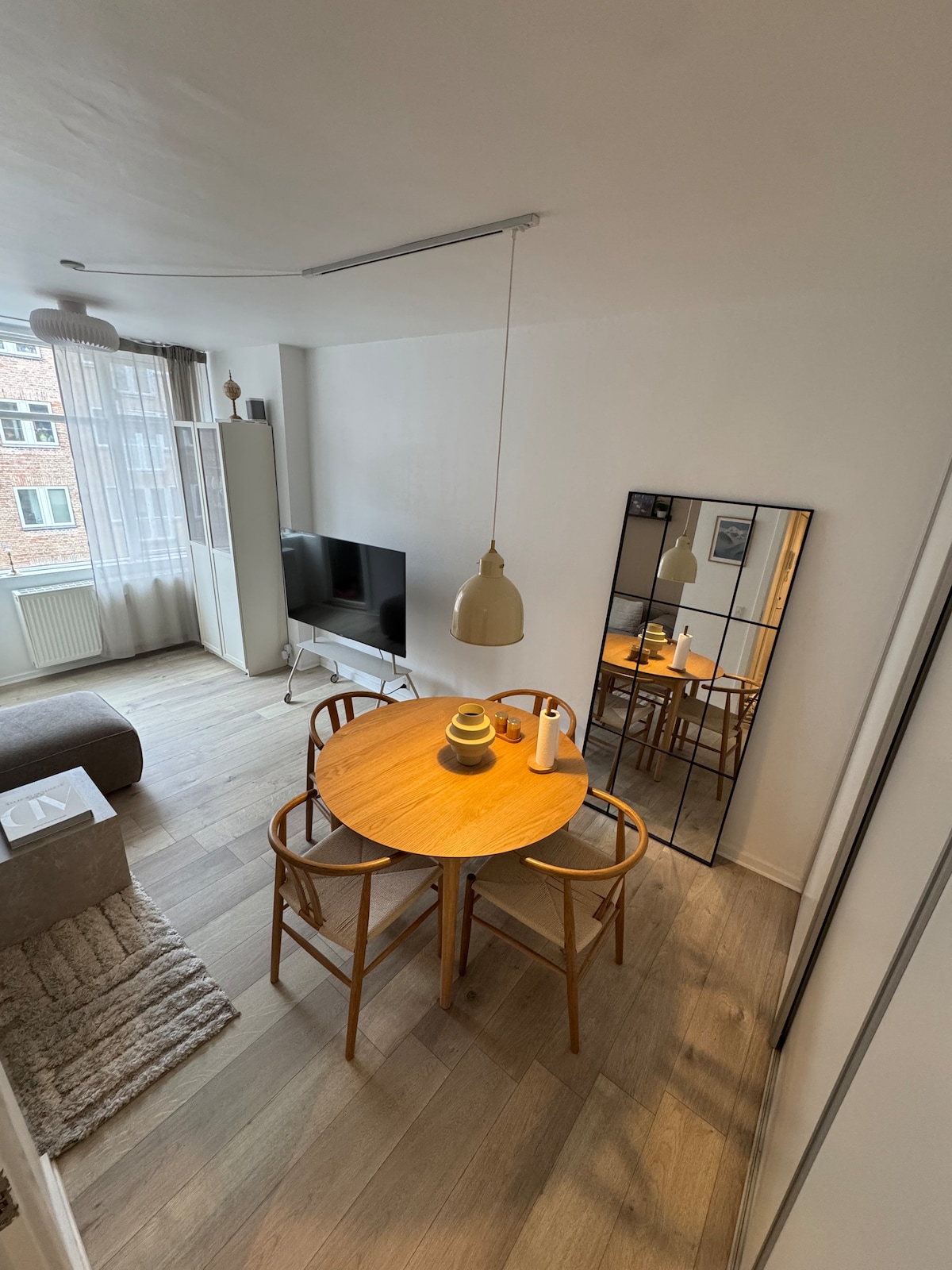 Inside, you'll find a spacious living room connected to an open New York-style kitchen, fully equipped for culinary adventures. Step onto the cozy private balcony with a great view of nørrebro. The bedroom is designed with a grounding and home like feel. Private bathroom and shower :) Sofa bed in the living room measures: width: 144 cm Bed length: 199 cm