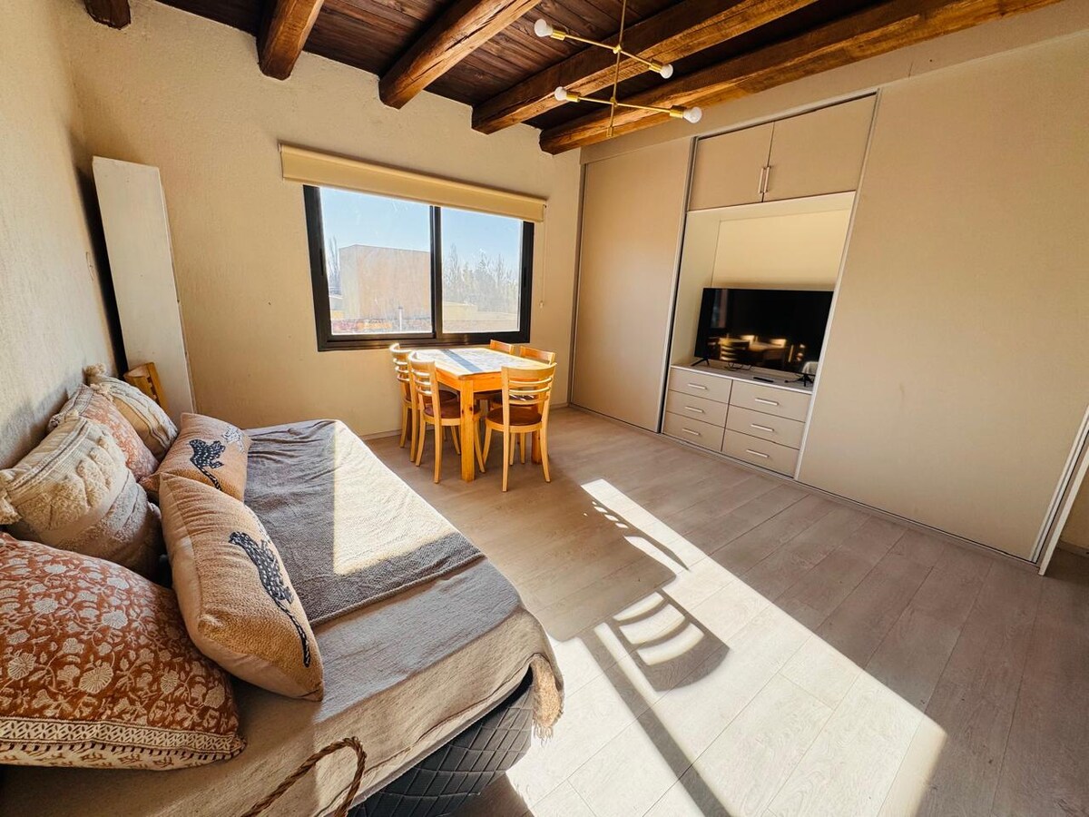 Unikal loft, unudulmaz mənzərə!! Mendosa şəhərindən 25 km məsafədə, şərab yollarında, Perdriel, Lujan de Cuyo, Malbek şərabının vətəni olan şərab yetişdirən ərazidə. Ətrafda fermalar, şərab zavodları və restoranlar var. Dincəlmək, macəra turizmi və yüksək dağlara (30 km), Çakras de Koriyaya (10 km) və ya Lujan de Kuyo Şəhərinə (5 km) ekskursiyalar üçün baza kimi idealdır. Yataq otağının məxfiliyini tələb etməyən 2 nəfər və ya 4 nəfərlik qrup üçün. Ora taksi ilə gedə bilərsiniz, amma maşınla getmək məsləhətdir.