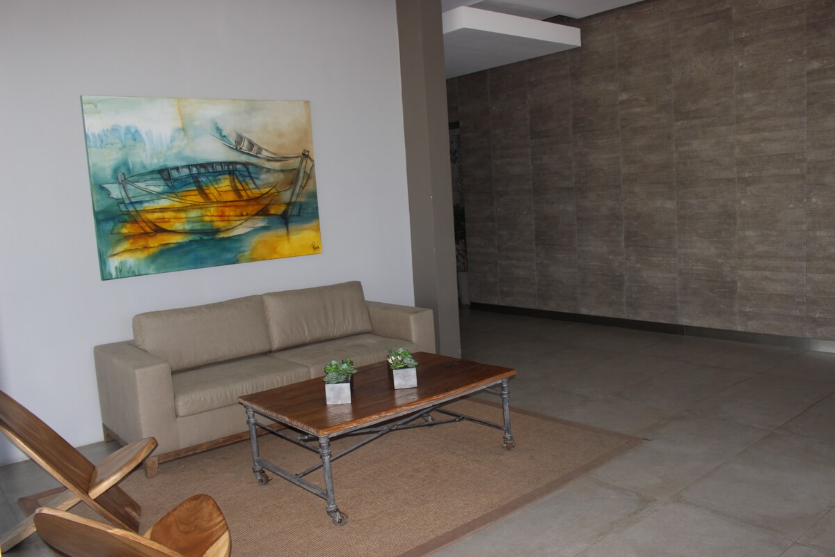Bu unikal və rahat tətildə dincəlin. Gözəl mənzil/ parkinq, çimərlikdən metrlərlə məsafədə. Amerika mətbəxi, qonaq otağı, 2 yataq otağı, 2 hamam otağı, üzgüçülük hovuzu . La Serena Mayakından 1 km məsafədə yerləşir, restoran, kafe və sörfinq məktəbinə yaxındır. Sektor gün batımı zamanı sahildə gəzmək üçün idealdır. Beşinci mərtəbədə yerləşən mənzilim sizə dincəlmək və şəhərdəki qonaqlamanızdan zövq almaq üçün lazım olan qoruma və rahatlıq təmin edəcək.