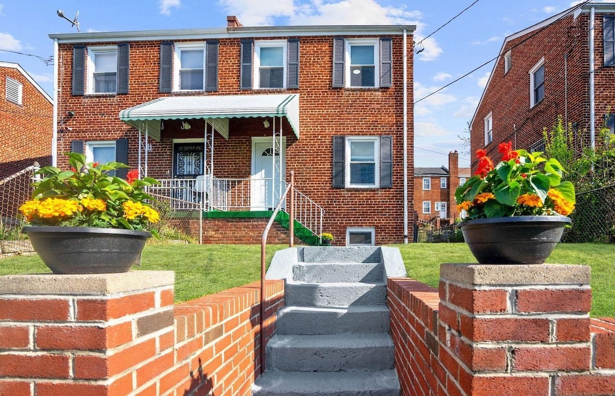 Welcome to Hilltop Hideaway! Enjoy the tranquility of DC in the Fort DuPont neighborhood. We are nestled right behind Fort DuPont Park, yet a short drive to main attractions. We can't wait to host your group in our home, outside on lit the patio for dinner, or a movie night. This is a 2 story house with a basement. Free street parking for multiple cars in front of the property. DISCLAIMER: if you want to walk to the monuments and bars, look for places in NW. We are in a quiet neighborhood.