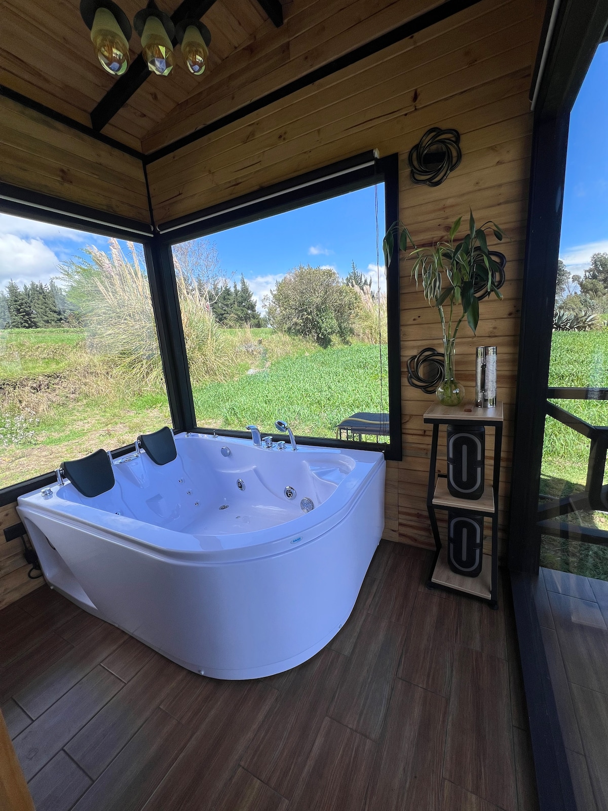 Bienvenido a nuestra cabaña única cerca de Quito! Disfruta de vistas panorámicas al Illiniza y Cotopaxi desde tu ventana. Sumérgete en la naturaleza con caminatas por el bosque de pinos muertos, relájate en el mirador o conoce nuestra granja con animales. La cabaña combina comodidad con entretenimiento, ofreciendo internet, una TV de 50 pulgadas, jacuzzi, una lujosa cama king y un sofá cama. ¡Experimenta la hospitalidad en un entorno armonioso que hará de tu estancia una experiencia inolvidable!