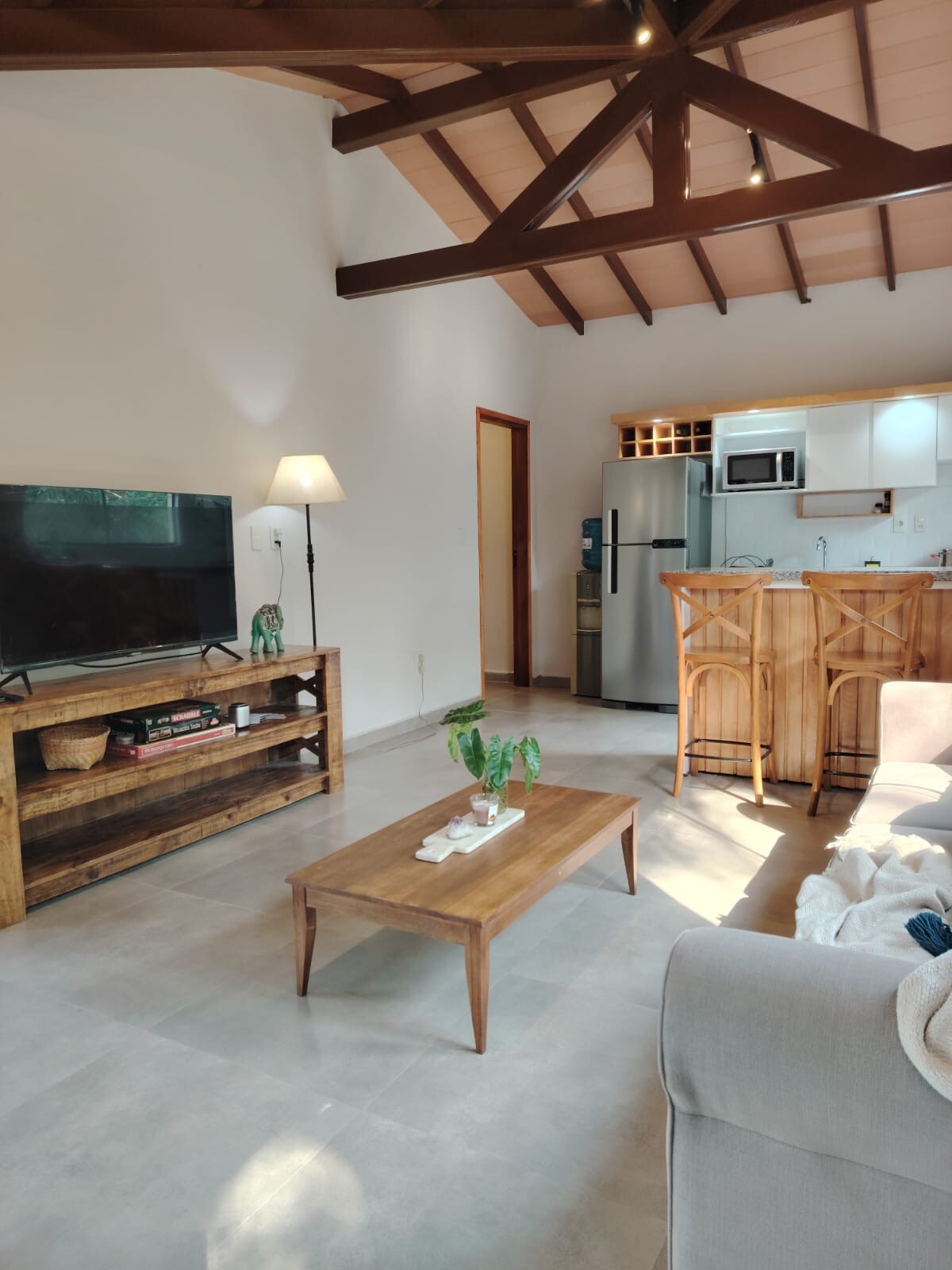 Geniş və günəşli otaqları olan tətil yaşayış yeri. Bütün otaqlarda ağaclarla dolu ortaq həyətlərə baxan böyük pəncərələr. İsti günlər və soyuq günlər üçün kondisionerli mühit çöldə gözəl buxarı və ya soba. Quinço, hovuz masası, pinponqlu böyük qalereya. Voleybol meydançası və treetop terrası. Geniş parkinqi, sürətli Wi-Fi, TV kanalları, Netflix və s. olan paylaşılan veranda.