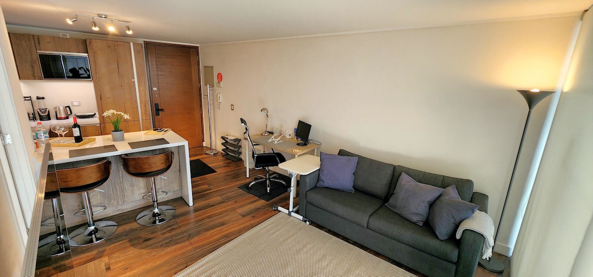 Santyaqo və And dağlarının panoramik mənzərələrinə baxan, 31-ci mərtəbədə yerləşən müasir mənzil. İrarrasaval metro stansiyasının tam qarşısında yerləşdiyinə görə şəhərin bütün hissələrinə asanlıqla gedə bilərsiniz. Mənzildə rahat yataq otağı, balkon mənzərəsi olan işıqlı qonaq otağı, tam təchiz olunmuş mətbəx və maksimum 3 qonaq üçün çarpayı-divan var. Santyaqodan yuxarıdan zövq almaq istəyən cütlüklər, işgüzar səyahətçilər və ya kiçik ailələr üçün mükəmməldir.