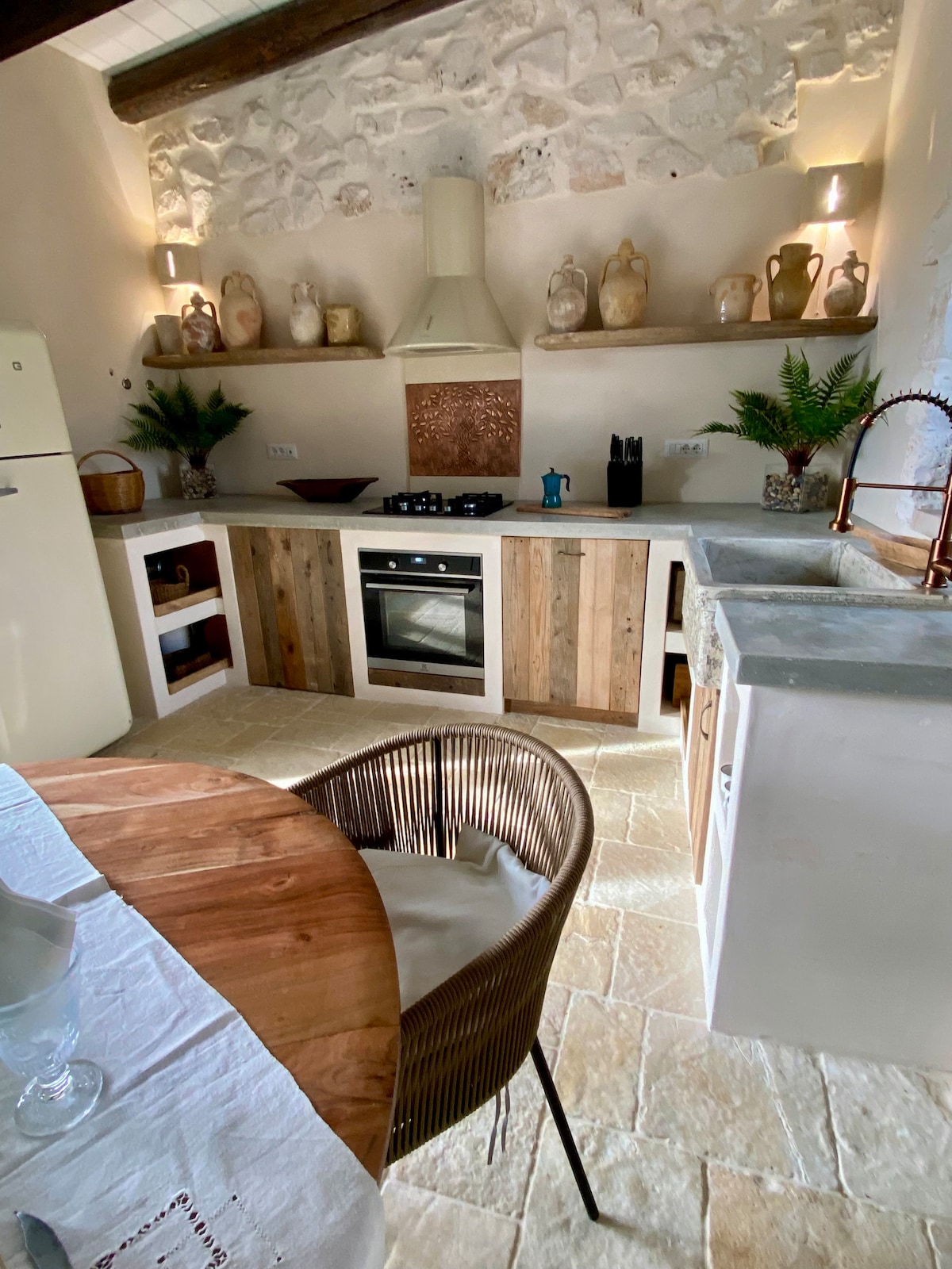 Bu qədim gizli Cemin tamamlanması beş il çəkdi və Wabi Sabi üslubu ilə sevərək bərpa edildi. Hovuzu və cakuzisi olan çox fərqli, çox tək bir estetikaya malikdir. Geniş əkin sahələri, Zeytun bağları və kiçik meşələrlə əhatə olunan bu məkan Puqliyanın bir çox məşhur turistik yerlərinə, o cümlədən Alberobello, Monopoli, Fasano, Polignano al Mare, locorotondo və bir çox digər yaxın kəndlərə bir dəqiqəlik məsafədə yerləşən ən özəl Gizli sirlərdən biridir.