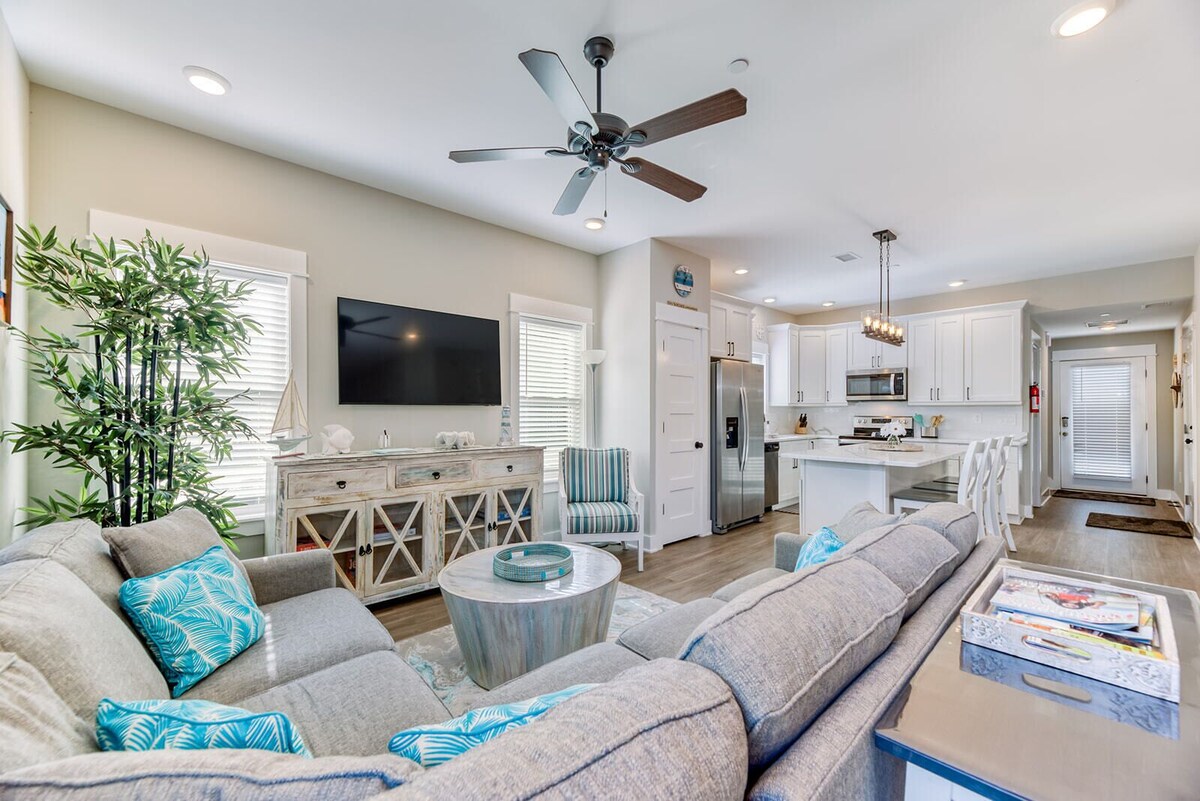 This unit has been nick-named the Green Floor because of the gorgeous emerald green stained concrete floor in the living space. Furniture and decor is modern, beachy, and comfortable all at the same time. The perfect location for your stay in Duck. Right in the heart of downtown Duck, there is no reason to use your car while here! Walking and biking distance to the beach, the sound and the boardwalk, and all great shopping and delicious restaurants Duck has to offer! QUIET HRS 10PM-7AM