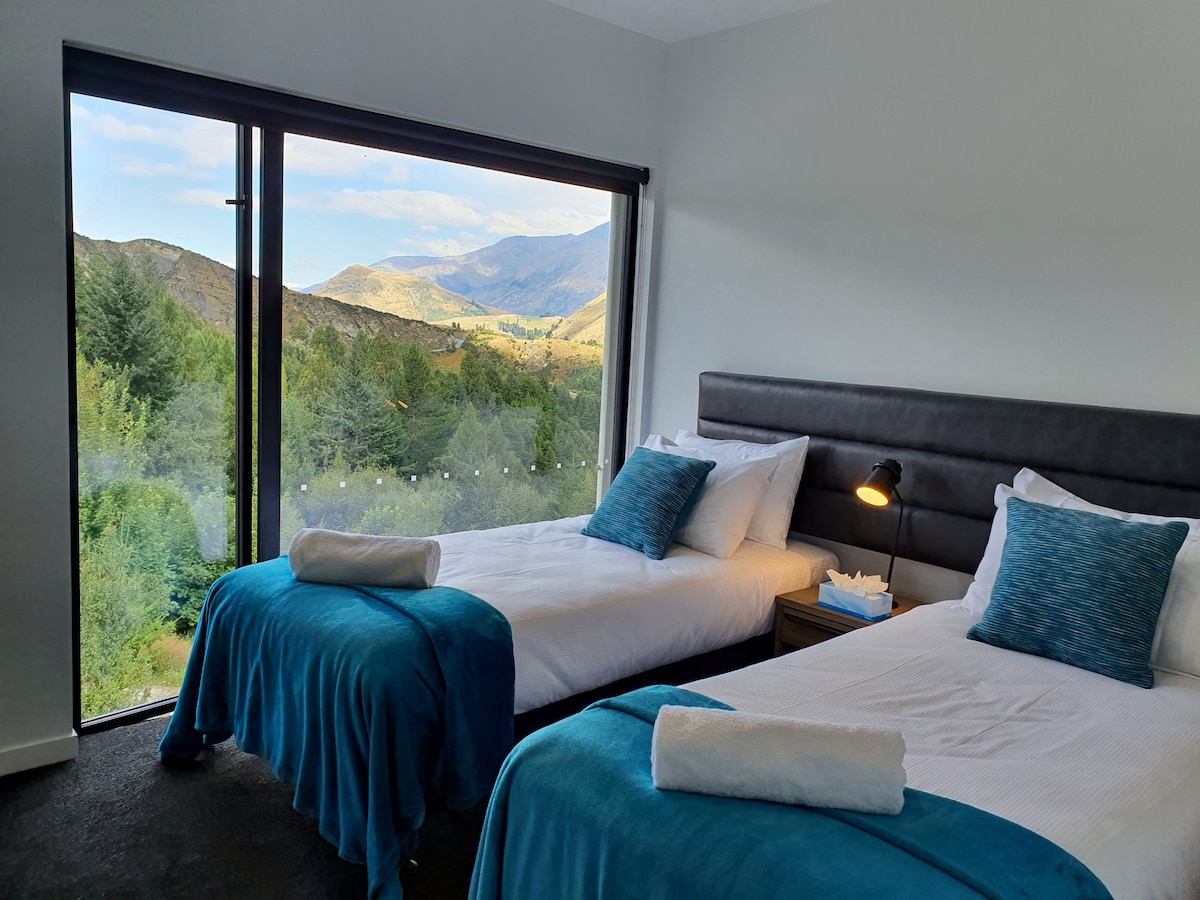 Şotover çayının heyrətamiz mənzərələri. Mərkəzi Kvinstaunun səs-küyündən uzaqda müasir mənzil. Çox özəl və dinc. Queenstown-un seçilən cəhətlərini araşdırdıqdan sonra istirahət etmək üçün ideal yer. Qışda qar idman növləri və Yayda dağ velosipedi sürmək üçün mərkəzi Kvinstauna 10 dəqiqəlik məsafədə və Koronet Pikinə 15 dəqiqəlik məsafədə yerləşir. Avtobus dayanacağı küçənin sonunda yerləşir. Yerli restoranlar, barlar, Onsen isti hovuzları və Shotover Jet-ə qısa gəzinti.