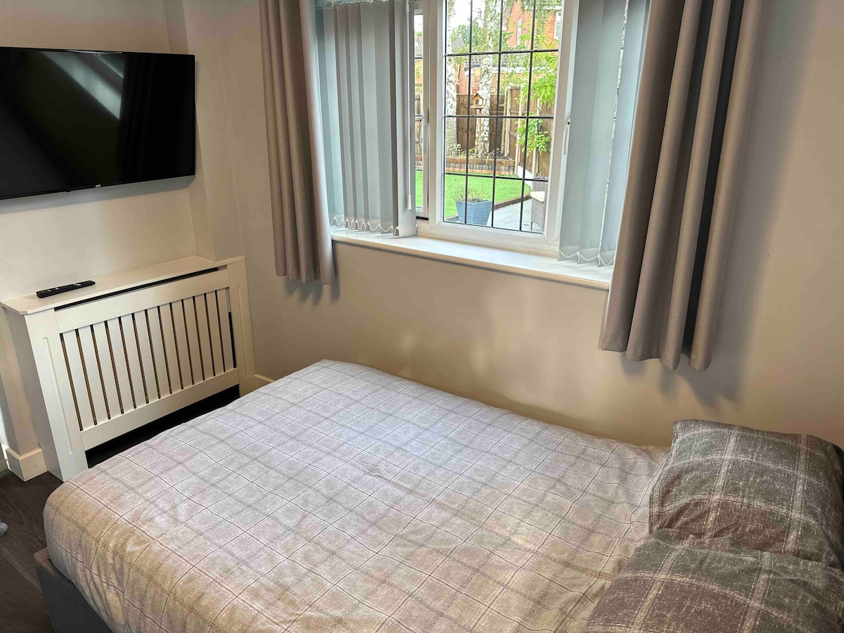 Tam ayrıca girişi və kiçik çöl məkanı olan "Mini Mənzil". - Çanaq, hob, mikrodalğalı soba və soyuducusu olan mətbəx - TV - KİÇİK İKİNƏFƏRLİK çarpayı (4ft) - Duş, tualet və çanaq - Parkinq ÇOX sakitdir; küçənin hər iki ucunda göllər. Kənd mərkəzi pub, supermarket, kafe və çip mağazası ilə qısa məsafədədir. Avtobus dayanacağı küçənin sonunda yerləşir və Şəhər Mərkəzinə sürətli giriş imkanı verir. Nəzərə alın ki, çarpayının ölçüsü (1 x iki nəfərlik) və 1,5 deyil, 1 ayrıca hamam otağı var.