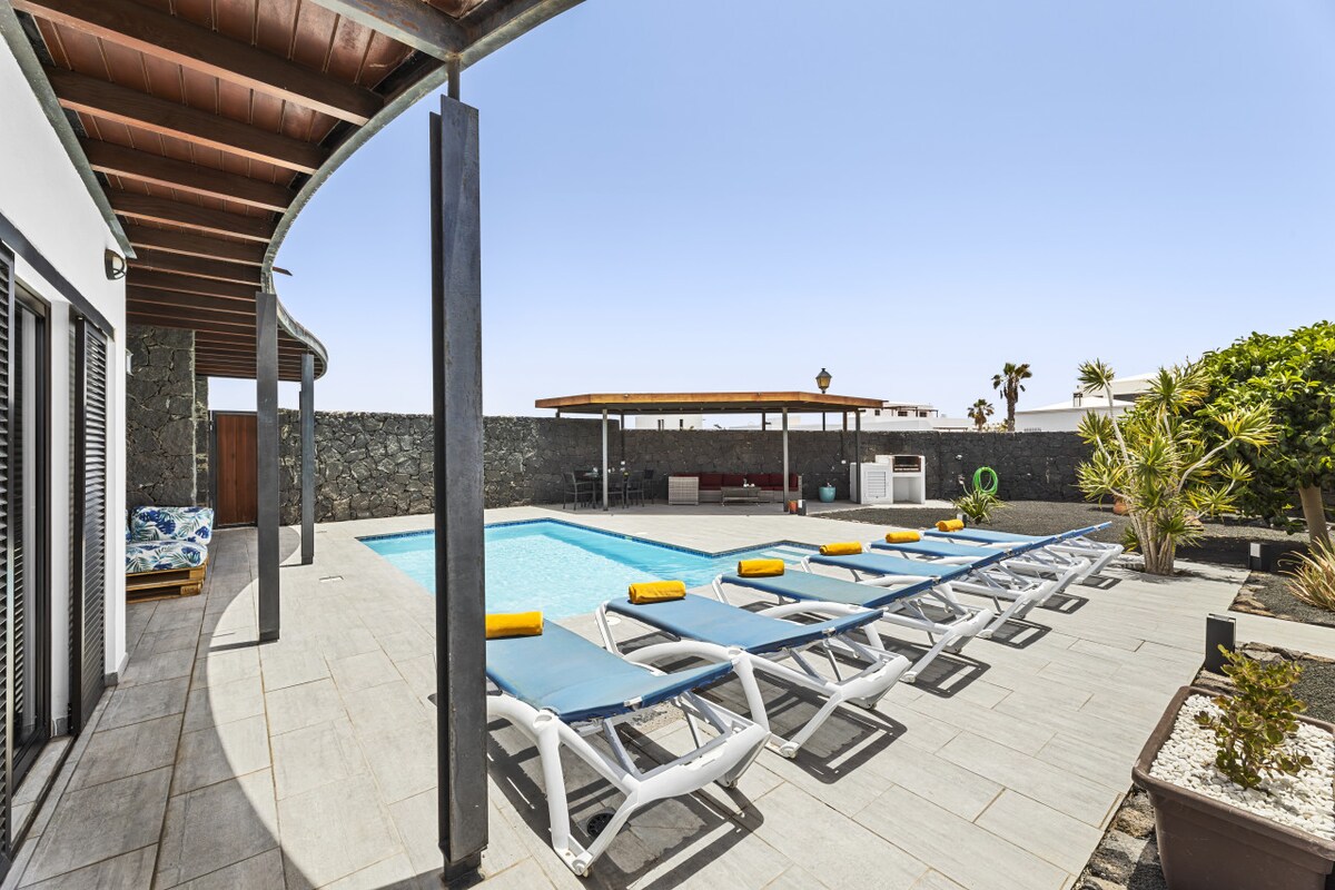 Our house is close to the sea, beaches and the bus stop, where you can catch the bus that takes you to Playa Blanca in 5 minutes. It is the perfect place for relaxing holidays for couples or families with kids, and a wonderful temperature also during winter. The outdoor patio is well protected against the wind. The house is fully equipped with TV, WiFi, barbecue, heated swimming pool, and furnished as comfortable as possible, as this is where we spend our holidays, when we come to Lanzarote.