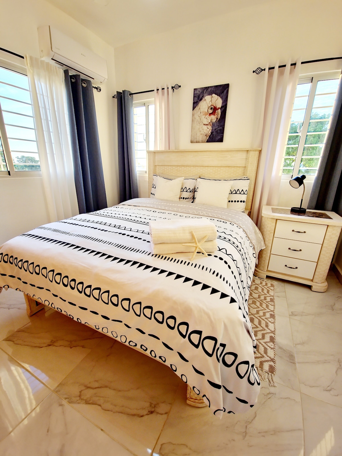 Karib tətiliniz üçün mükəmməl olan geniş 2 otaqlı nömrə! Fotolara nəzər salın - hər şey yenidir (2020-ci ilin yanvar ayında tikilib) və Puerto Plata şəhərinin mərkəzindəsiniz, çimərlikdən hər cür şəraiti olan 1 dəqiqəlik məsafədəsiniz. - Komfortlu qonaq otağı w/ Smart TV - Yemək ləvazimatları ilə tam mətbəx - Mərkəzi A/C və istilik - Paltaryuyan/qurudan maşın - 2 mərmərlə örtülmüş tam vanna otağı - Gəzinti üçün şkaflar - Pulsuz Wi-Fi Bu mənzil qısa və uzun müddətli qonaqlamalar üçün mükəmməldir. Aylıq/həftəlik endirimlər mövcuddur.