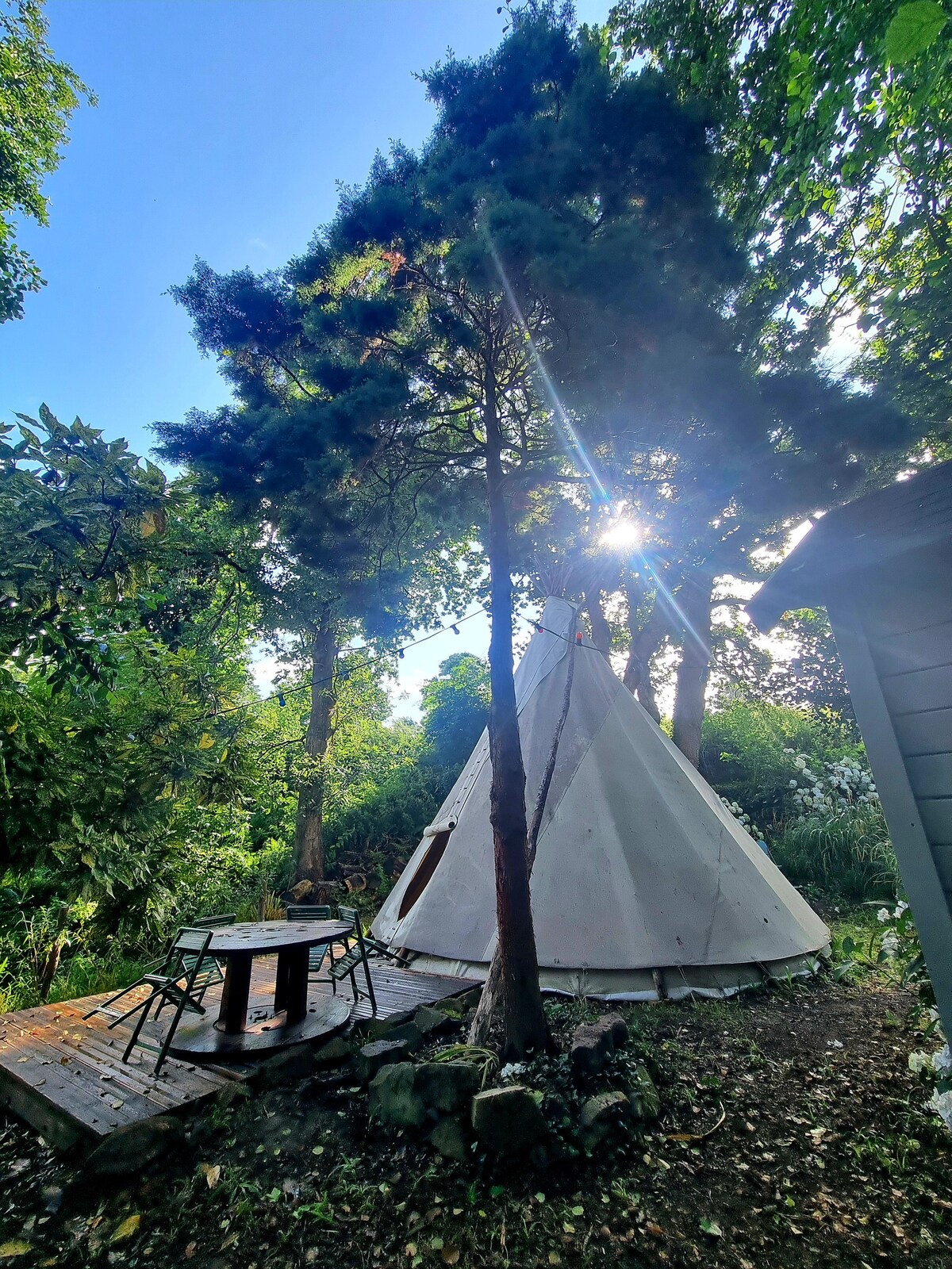 Au coeur d'une petite ferme où la vie est douce et belle, une belle tente spacieuse vous attend pour des nuits calmes où seul le gazouilli des oiseaux viendra vous réveiller en douceur. Chaque tente est équipée de 4 lits avec de bonnes couettes, d'une belle table de pique-nique réalisée avec le bois du lieu, et d'un petit salon d'été. Jolie cuisine collective et sanitaires à proximité, vous serez charmés par ce lieu insolite au coeur d'une nature généreuse.