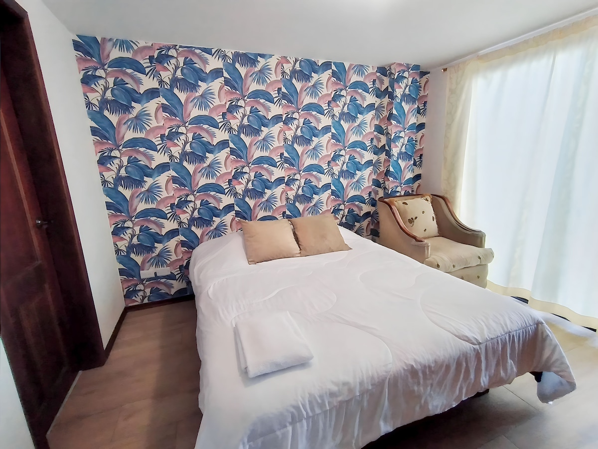 Disfruta de la comodidad de este alojamiento tranquilo y céntrico, ideal para trabajo remoto. Ubicado en la parroquia Alangasí, con fácil acceso a complejos turísticos con piscinas de aguas termales, puedes realizar caminatas al cerro Ilaló que brinda vistas únicas del hermoso Valle de los Chillos y Tumbaco, disfruta de comidas tradicionales, también puedes conocer hermosas cascadas como el Pita, Molinuco, Cóndor Machay, entre otras, que están ubicadas a unos 45 minutos del alojamiento.