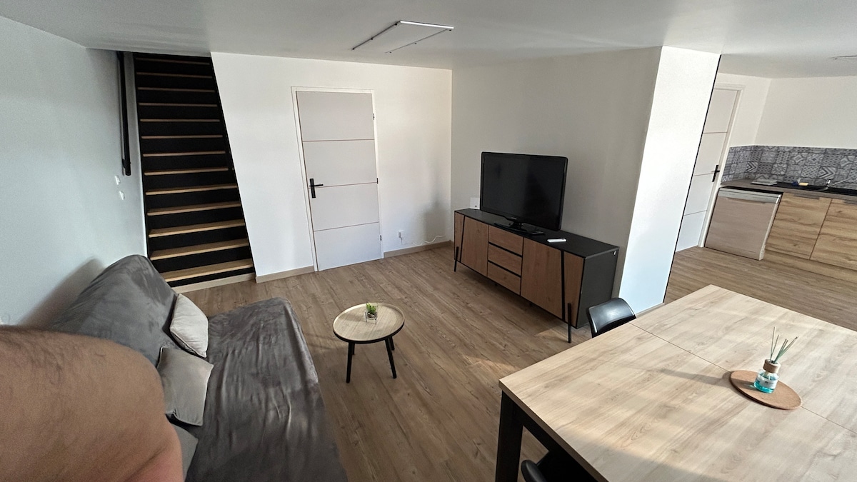 🏙️ L’Industriel • 41 m² refait à neuf en hypercentre de Le Mans Calme, à 2 pas de la gare & du Palais des Congrès 🚉. 🛏️ 1 chambre lit double + canapé BZ (idéal 3 adultes max ou 2 adultes + 2 enfants). 🚿🛁 SDB haut standing (douche + baignoire) + lave-linge, WC séparés. 📶 Fibre ultra rapide + 💻 espace travail. 🔑 Arrivée autonome (digicode) & 🔒 accès sécurisé. 🧺 Draps/serviettes fournis. 🚊 Tram/bus, restos & commerces au pied. ☕ Thé/café. 🅿️ Parking proche.