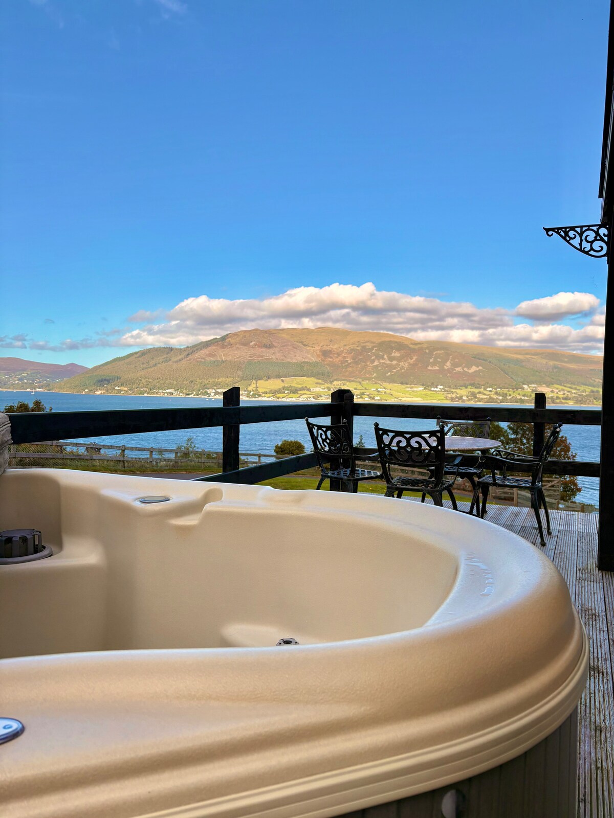 Kick back and relax in this calm, stylish space.lough lodge is situated at the foothills of the Cooley mountains on the north side of the picturesque Carlingford lough and mourne mountains 5 minute walk up to reach the Tain trial and 5 minute walk down to reach the omeath/carlingford greenway its a 1 bedroom sleeps up to 4 people with a sofa bed in living room ,bedroom living room/dining area outside balcony to enjoy a relaxing stay with hot tub and bbq stunning views in a peaceful setting