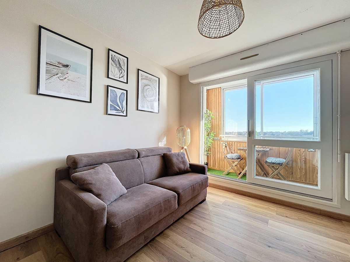 Kursulles-Sur-Mer Limanının heyrətamiz mənzərələri və Cuno çimərliyinə yaxın (dağılma). ⚓️⛵️ Sakit və təhlükəsiz yaşayış yerində lift lifti ilə üst mərtəbədə studiya cocooning. Les + de les Clem's ❤️ - Keyfiyyətli yataq dəsti: rahat 140x200 çarpayı. - İdeal mövqe, piyada məsafədə: liman, marketlər, çimərliklər, restoranlar... - Tam təchiz olunmuş qonaqlama yeri. - Liman mənzərəli loqgiya. - Lif bağlantısı olan internet. Yataq dəstləri və dəsmallar təmin edilir. 🛌 Öz-özünə giriş.🔑