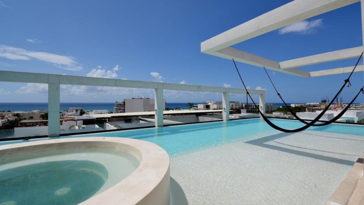 ✨ Casa Sol lüks AWA Yaşayış Binalarında dizayner mebelləri ilə təchiz olunmuş, heyrətamiz 2 yataq otağı/2 hamamlı mənzildir. Mənzərəli hovuzlar, damüstü sonsuzluq hovuzu, üzgüçülük barı, cakuzi, qamaklar, idman zalı, yoqa studiyası, birgə iş məkanı, 24/7 təhlükəsizlik, Uşaq Klubu və oyun meydançası daxil olmaqla kurort üslublu imkanlardan zövq alın. Çimərliyə, 5-ci prospektə, mağazalara, restoranlara və görməli yerlərə qısa məsafədə yerləşən Playacarda ideal şəkildə yerləşir. Rahatlıq və üslub axtaran ailələr, cütlüklər və ya dostlar üçün mükəmməldir. 🌞✨