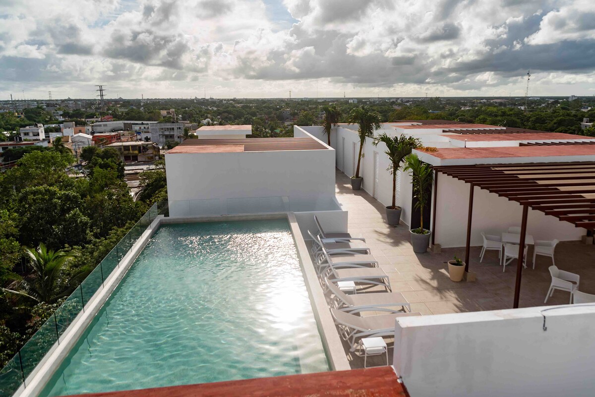 Bu məkan Playa del Karmenin mərkəzində strateji mövqeyə malikdir: Məşhur Kvinta Avenidadan 4 blok, o qədər yaxın məsafədə gəzə və supermarketdən sadəcə bir blok ayıra bilərsiniz. Bura çox təhlükəsiz ərazidir. Burada cəmi bir neçə addım məsafədə restoranlar və hər cür xidmətlər tapa bilərsiniz. Binanın ümumi ərazisində Karib dənizinə baxan gözəl dam hovuzu, idman zalı və barbekü sahəsi var. Mənzilin daxilində A/A, mətbəx, televizor və Wi-Fi.