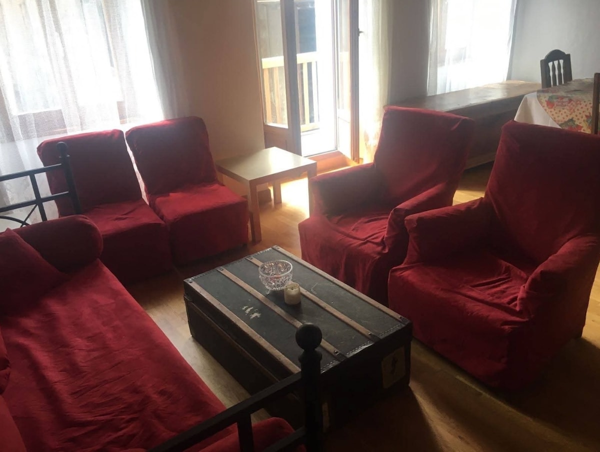 Perfect place for a couple, friends or a family with many areas to take a breath. Nice for getting to know the Verbier area without having to go all the way to the top. Access to all services: supermarket, gas stations, bus and train stops. On an old street with a lot of style. Three stages, the first is the kitchen and living room with a small balcony. The second one is the bathroom, living room and our room. And finally in the top is the penthouse, your room.