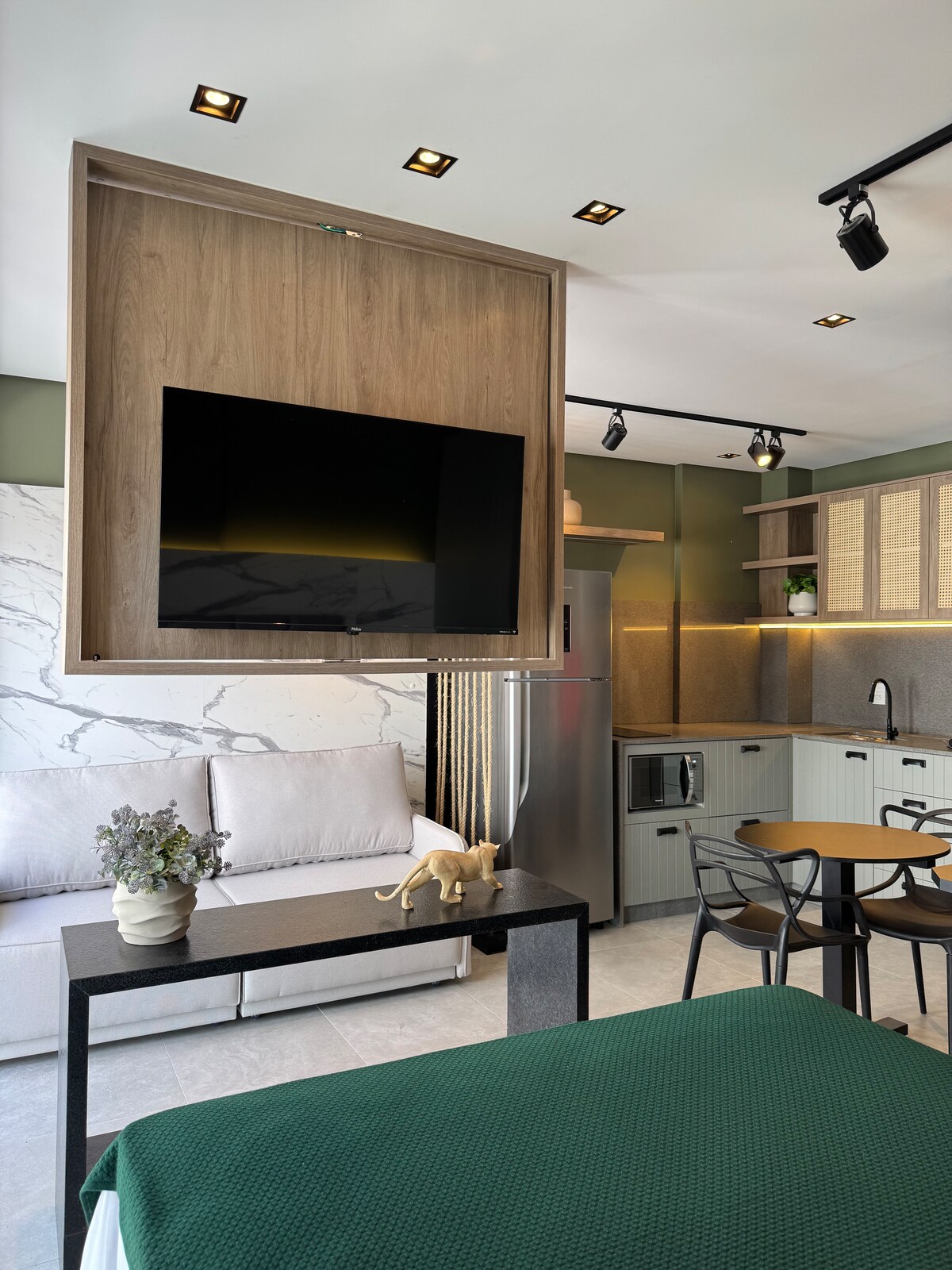 Studio Spain-da ölkənin bədii damarlarından ilhamlanaraq layihə hazırlamışıq. Almodóvarın rəngləri Qaudinin formalarına cavab verir — müxtəlif dövrlərdə ispan estetikasında dramatik iz buraxan kinorejissor və memar. 38m ² studiyamız rahat və xoş qonaqlama üçün ehtiyacınız olan hər şeylə tam təchiz olunub. Strateji baxımdan Criciúma şəhərinin mərkəzində yerləşir. Bura bazarlardan, apteklərdən, xəstəxanalardan, mağazalardan, restoranlardan və Criciúma stadionundan qısa məsafədədir.