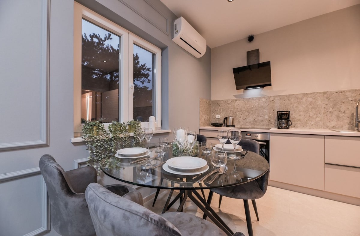 Yeni 2017 Krikvenikanın ən cəlbedici rayonlarından birində yerləşən kiçik otel tikilib. Bu mənzil ikinəfərlik çarpayı, qarderob və masa və mətbəx kimi keyfiyyətli mebellərlə təchiz olunub. Hamam otağında duş, çanaq, tualet, Bayd və saç feni var. Mətbəx yalnız içkilərin hazırlanması və soyuducudan istifadə üçün nəzərdə tutulub. Aşpazlığa icazə verilmir. Təhlükəsizliyiniz üçün bütün əmlak 24 saat videomüşahidə altındadır.