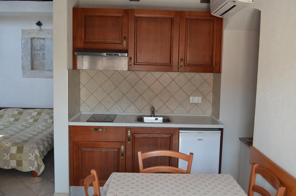 Mənzil dənizə gedən birinci cərgədə birinci mərtəbədə yerləşir. Burada iki nəfərlik çarpayısı, hamam otağı, mətbəx + qonaq otağı və böyük terrası olan iki otaq var. Tamamilə yenidir və tam təchiz olunub (qab yuyan maşın, camaşır maşını, kondisioner, WIFI). Binanın arxasında parkinq yeri var. Mənzilin yanında səhər yeməyi/nahar/şam yeməyi, eləcə də dəniz suyu ilə qapalı hovuzun (həm münasib qiymətə yemək, həm də hovuz - mənzilin qiymətinə daxil deyil) qəbul edilə biləcəyi otel var.