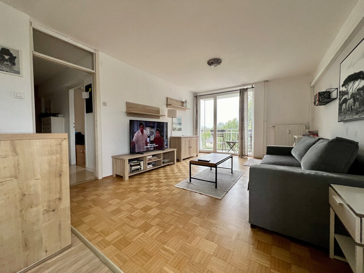 Şəxsi evin birinci mərtəbəsində, öz girişi və düz qarşısında parkinq yeri olan rahat mənzil. Bura sakit, yaşıl ərazidə yerləşir – dincəlmək, uzaqdan işləmək və ya şəhərdən uzaqlaşmaq üçün mükəmməldir. Yay aylarında təbii şəraitdə həşəratlar tamamilə normaldır:) Şəhər mərkəzi cəmi 5 km məsafədədir. Yaxınlıqda avtomobil yolu halqası, şəhər avtobus dayanacağı 200 m. VACİBDİR: Turist vergisi daxil deyil: hər böyük üçün € 3.13/gecə, hər uşaq üçün 1,57 €.