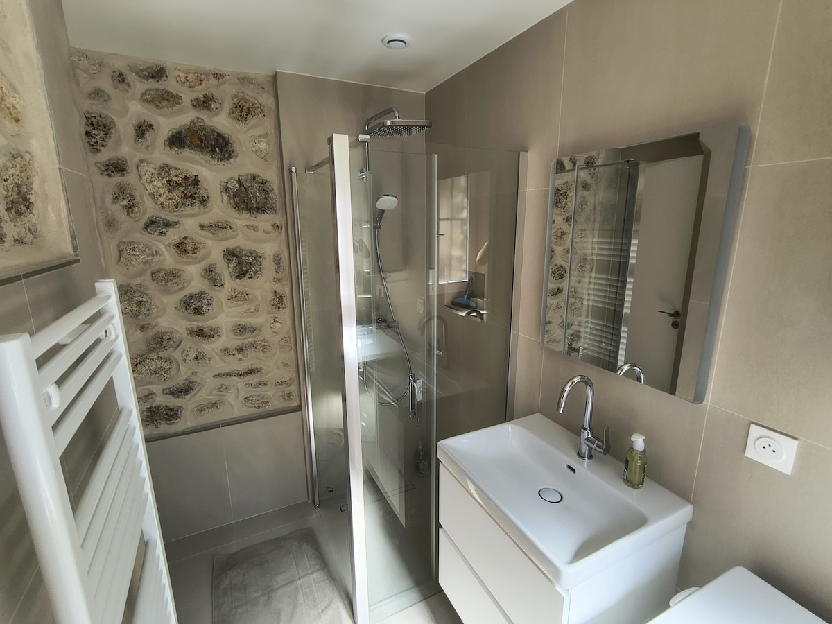 2021-ci ildə Çatoudakı Villada müstəqil təmir edilmiş 15m2-lik 🏠xoş studiya. Sakit və meşəlik mühit. Avtobus stansiyalarına yaxındır. 👨🍳Tam təchiz olunmuş mətbəx və mikrodalğalı soba. Qatlama masası olan iş sahəsi. Miliboo bəzək brendindən yeni 3 nəfərlik divan çarpayı (yüksək sıxlıqlı döşək) 🛀Ayrıca hamam və tualet. Çox yüksək sürətli 💻Wi-Fi daxildir