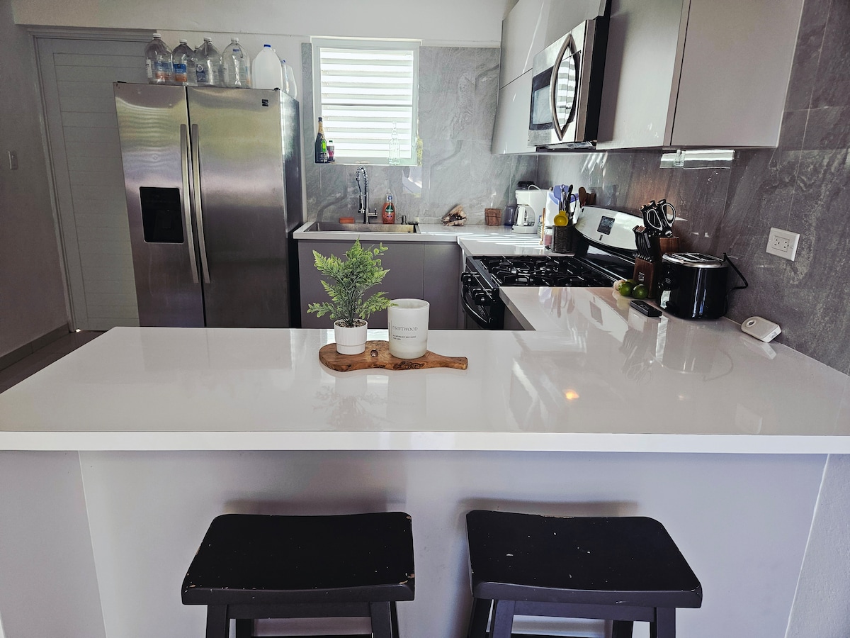 This beautiful house 6 MINUTES FROM BEACH! You are central to everything in Rincon! Most homes here only have 1 bathroom YOU HAVE 2 BATHROOMS and hot water. With a dryer for guests to use as well. COMES WITH 6 SETS OF SNORKEL EQUIPMENT!!! BEDS are super COMFORTABLE with MEMORY FOAM toppers! CLOSE TO RESTERAUNTS! HOST is EXTREMLY KNOWLEDGEABLE ABOUT THE AREA AND AVAILABLE FOR ANY QUESTIONS to have FUN IN THIS MAGICAL TOWN! Parking is safe its not street parking. There is a balcony!
