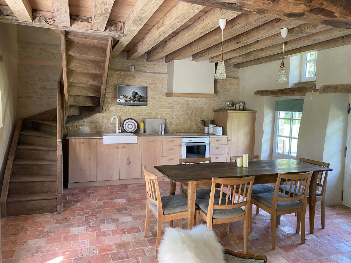 Perche üçün səciyyəvi olan palıd (təbii işıqlı filiz suvağı, müasir ağ mebellər və bərk palıd mebeli) kiçik terraslı, lakin açıq daş və böyük şüalarda çox sakit bir ev. Kiçik terraslar: içi boş yola açılan cənub üzlü ön, tərəvəz bağının ortasında sərin arxa. At, eşşək sahələri + yaxınlıqdakı meşə. Ətrafdakı malikanələri və ya köhnə şəhərləri ziyarət etmək üçün ərazidə velosiped icarəyə götürmək imkanı. Velosiped qarajı.