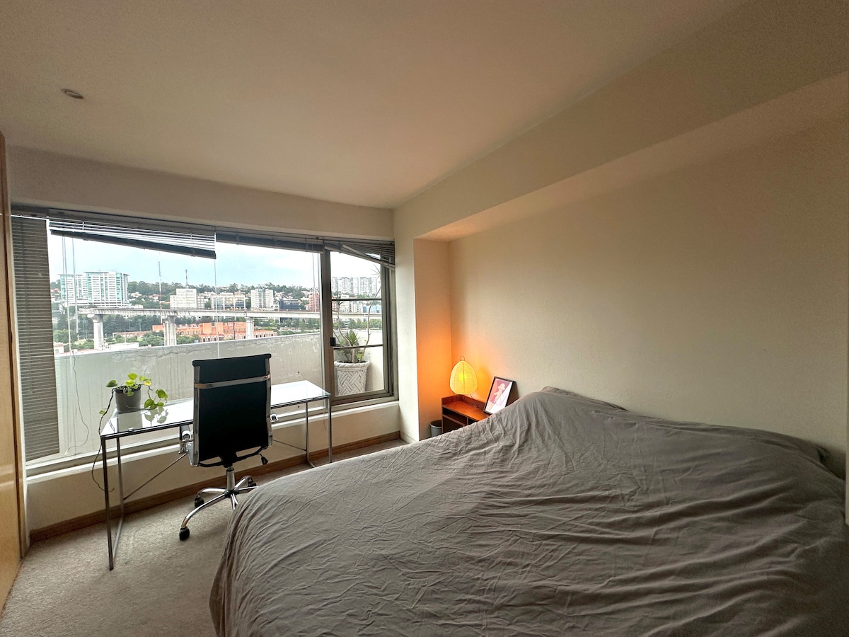 UP Santa Fe-də qalın. Alış-veriş Mərkəzi və ABC Xəstəxanası, La Mexicana Parkı yaxınlığında, bütün imkanlarla təchiz olunmuş, Universitetlərə yaxın, Özəl parkinqi, 24 saat təhlükəsizlik xidməti və CDMX-ə asan çıxışı olan YENİ, rahat loft. Yüksək Sürətli WIFI, QSize Yatağı olan Səs İzolyasiyalı Otaq, Soba ilə Təchiz Edilmiş Mətbəx, Böyük soyuducu, paltaryuyan və quruducu. Qonaq otağında qeyri-adi HiFi səs sistemi olan televizor. Siqaret çəkmək, ev heyvanları və şənliklər qadağandır Pulsuz gəzinti məhəlləsi. (Rezervasiya üçün şəxsiyyət vəsiqəsi tələb olunur)
