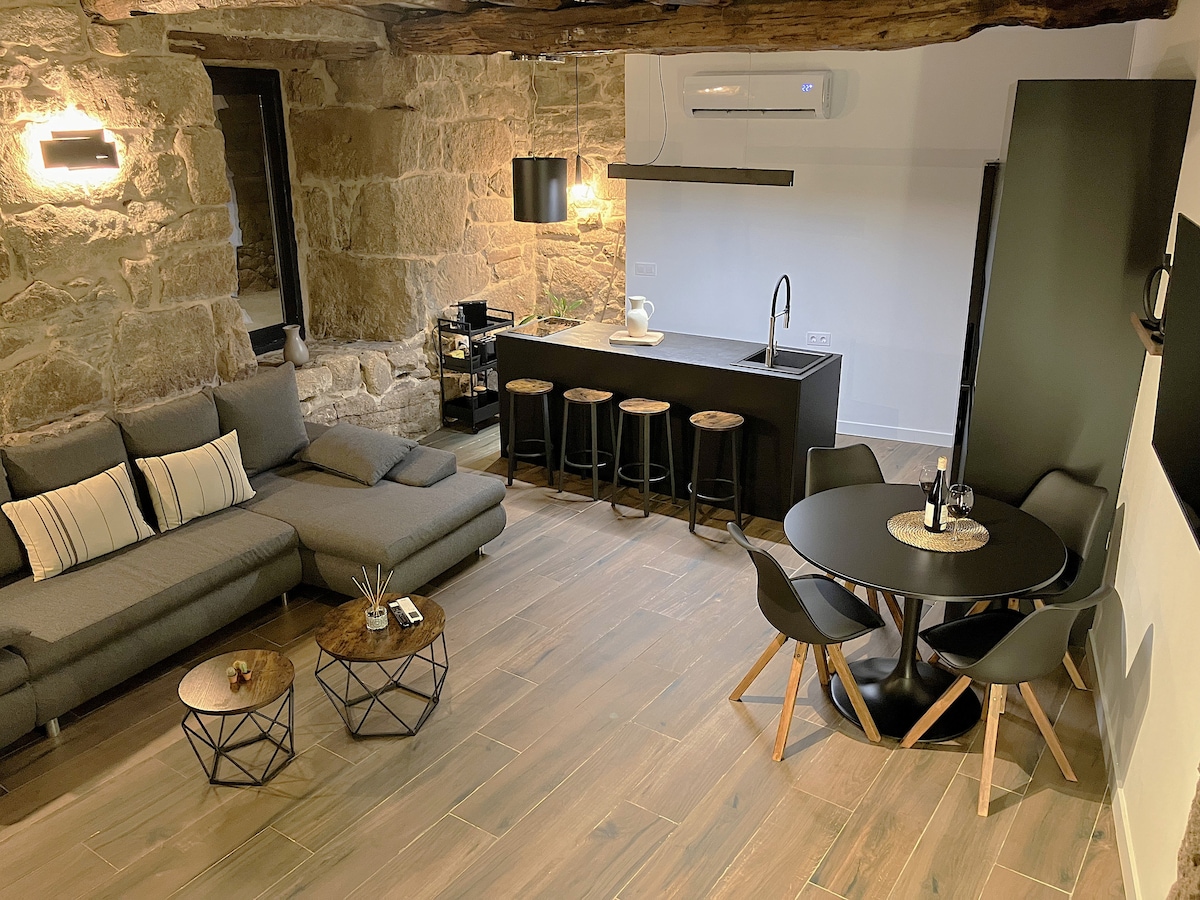 Alojamiento de 25 metros cuadrados, todo en la misma planta, con habitación doble, servicio de cocina amueblada, con todo lo necesario y baño propio. Es una estancia restaurada en el que la madera y la piedra han sido recuperados para dejar todo lo mas fiel posible a lo que era. Como detalle de bienvenida, dejamos en la estancia el desayuno del primer día que se compone de dos clases de leche, galletas, mantequilla, mermelada, cereales, café, cacao, infusiones, fruta, pan...