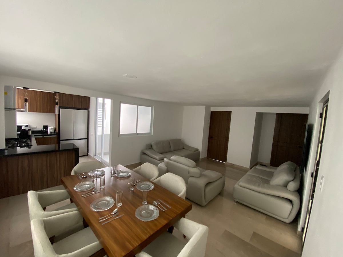 Bu geniş, təhlükəsiz, sakit və rahat ev öz ailəniz, tərəfdaşınız və ya dostlarınızla zövq almağınız üçün idealdır. Strateji mövqe: * Tarixi mərkəzdən 13 dəqiqəlik məsafədə * Puebla Avtobus Stansiyasından 13mins * Çolula Arxeoloji Zonasından 12 dəqiqəlik məsafədə * Puebla Beynəlxalq Hava Limanından 35 dəqiqə Regionda möhtəşəm qastronomik müxtəlifliyə malik restoran və barlar, parklar, mağazalar, apteklər var. Qonaqlamanızdan zövq alın.