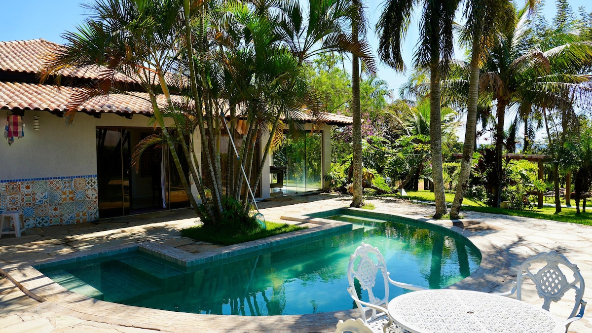 Wi-Fi, Ağıllı TV, üzgüçülük hovuzu və barbekü ilə əsas mərkəzi yerdə Sobrado. Ayrıca hamam otağı və kondisioneri olan 4 böyük otaq var. Hər otaqda 4-5 nəfər yerləşdirilir. Cəmi: 6 nəfərlik çarpayı və 9 nəfərlik çarpayıda 16-20. Üç otaq, mətbəx, soyuducu, soba, elektrik sobası, mikro dalğalar, böyük və kiçik qazanlar, 40 boşqab və çəngəl-bıçaq, paltaryuyan maşın. 6 avtomobil üçün qaraj. Yataq dəsti və dəsmallar (Hovuz dəsmalı yoxdur) 16 nəfərdən çox: adambaşına gecəlik 70.00.