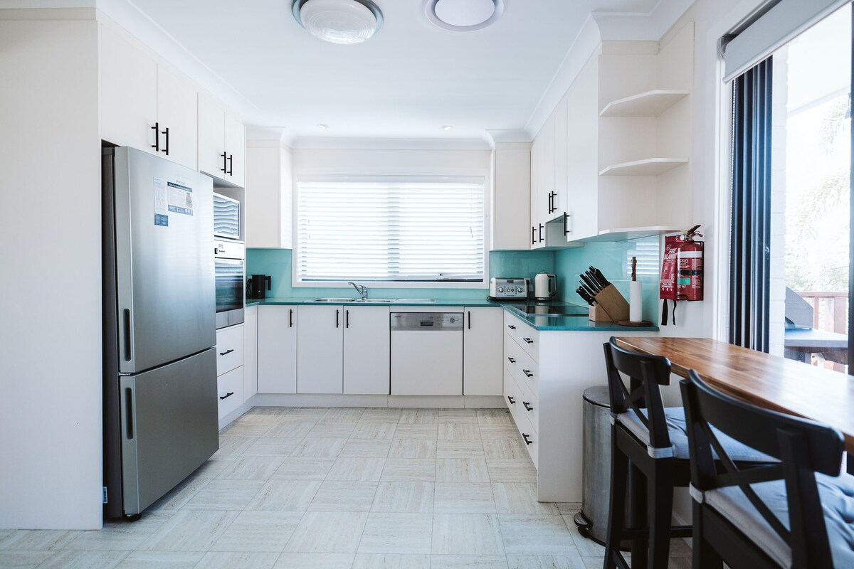 Böyük qruplar və ya bir neçə ailə üçün mükəmməl olan böyük bir mərkəzi həyəti olan 2 müasir yaşayış yerinə eksklüziv giriş. Ev #1-də 4 yataq otağı və Ev #2-də 2 yataq otağı var (5 çarpayı, 1 İkinəfərlik çarpayı: 1 İkinəfərlik + 1 Tək və 2 Divan-çarpayı). Hər bir iqamətgahın öz yaşayış yeri, mətbəxi, camaşırxanası, Wi-Fi, üstəgəl yeni 55 və 65 düymlük QLED televizoru var. Müxtəlif otaqlara AC və tavan ventilyatorları. Ultimate sahil və rahat həyat tərzi, Culburra Beach, Mağazalar, Yeməkxanalar və Boulinq Klubuna anlar.