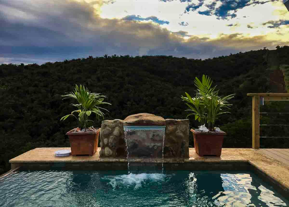 Relax and refresh at this unique and tranquil island getaway. Set in the tropical hillside of Mount Resaca, Casita Agua at Campo Alto is the perfect escape while visiting our beautiful island! Spend your days adventuring and your evenings relaxing in the pool. Our casita provides the perfect space for single travelers or couples looking to get away from it all! This studio unit features a dedicated plunge pool, queen bed, kitchenette and custom bath. Casita Agua has a backup water cistern.