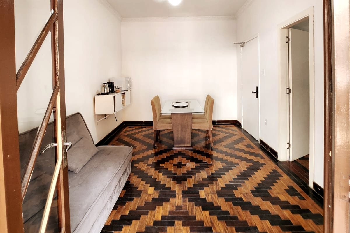 Studiya sadədir, Wi-Fi, yığcam (18 m²), mərkəzi, təmiz, mütəşəkkil və təchiz olunmuş, yemək, çimmək və yatmaq üçün yer var, lüks olmadan, lakin funksionaldır. porto Aleqre şəhərinin mərkəzində avtovağzala, metro stansiyasına, ictimai bazara, Santa-Kasa xəstəxanasına, Orla, muzeylərə və s. Binanın yanında ödənişli parkinq, gündüzlər dolu olduğu üçün gecələr küçədə park edə bilərsiniz.