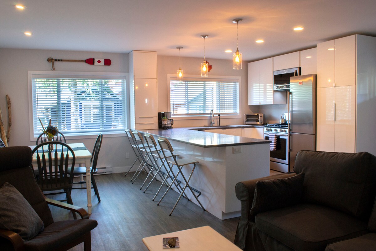 Yeni Airbnb qaydalarına uyğundur.STR İcazə 25286003. BC STR#: H456930200. Lakevyu terrası olan yeni təmir edilmiş ev. Göldən addımlar. Çoxlu otaq, paslanmayan oğurluq cihazları, geniş yataq otaqları, od çuxuru olan örtülü balkon. Avarçəkmə lövhələrindən pulsuz istifadə! Göldə xatirələr yaradın. Rahatlayın, üzün, balıq tutun, gəzintiyə çıxın və velosiped sürün! Yığcam avtomobillər üçün 4 parkinq yeri. Təbiət qoynunda yerləşən bütün imkanlara, akvaparka,alış-verişə və restoranlara piyada məsafə var. Kanada Qüvvələrinin Qarnizon Kəndinə 5 dəqiqəlik məsafədə.
