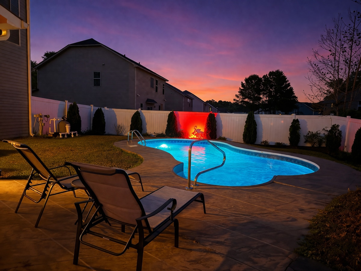 CAKUZİ qızdırılır və il boyu açılıb • 65in televizoru olan geniş ailə rm • Tam mətbəx və gözəl yemək sahəsi, 8 oturacaq • Kral böyüklüyündə çarpayı, televizor, ayrıca hamam w/ bağ vannası və ayrıca duş ilə master bdrm. • Kraliça böyüklüyündə çarpayıları olan iki əlavə geniş bdrms. • Arxa həyətdə hasarlanmış hovuza baxan günəş otağı (qışda bağlıdır) və ayrılan cakuzi. • Fort Bragg Hərbi Bazasına yaxın, I 95, Fayetteville Dövlət Universiteti, Metodist Universiteti, yerli xəstəxanalar, şəhərin mərkəzi və alış-veriş