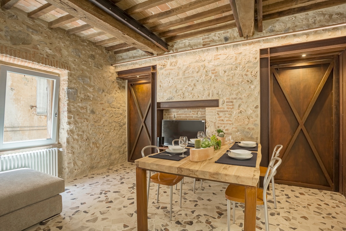 Ev maksimum məxfiliyi təmin edən Val d 'Orcia və Monte Amiata-nın nadir və ecazkar mənzərəsindən zövq alır. İnteryer yerli sənət adamlarının hazırladığı antik mebel və örtüklərlə Toskana üslubunun füsunkarlığını əks etdirir. Bu, ikinəfərlik yataq otağı, böyük masası olan böyük qonaq otağı, tam təchiz olunmuş mətbəxt, buxarı qarşısında, qonaq otağında ikinəfərlik divan çarpayısı ilə təchiz olunub. Veranda çöldə arxa fon kimi gün batımının rəngləri ilə yemək yeməyinizə imkan verəcək.