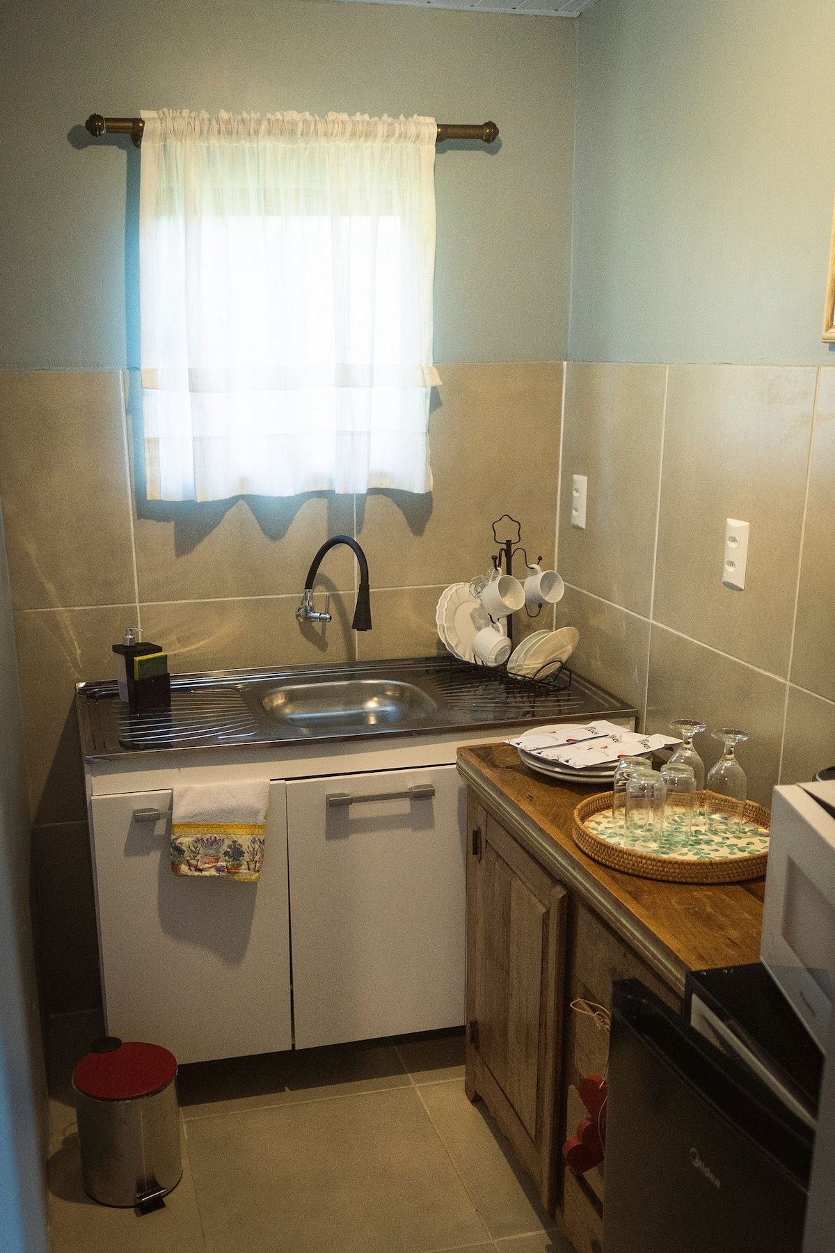 O loft e equipado com ar condicionado, uma TV de 32 polegadas, ar condicionado cama de casal,pia de cozinha,armário,utensílios básicos de cozinha,chaleira elétrica, termica de café, coador de cafe oferecendo roupas de cama e banho para maior conforto. *sem café da manhã*