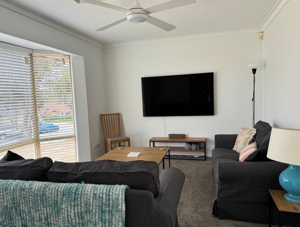 A quiet and private home. The living areas are filled with natural light a feature high ceilings adding to the spaciousness. It is equipped with modern fresh colored furnishings to give a holiday and relaxed vibe. Make a coffee and unwind on the couch , watch a movie or relax on the double day bed with a book or work at the desk. Sit outside the courtyard and enjoy the ambience. There is a fully equipped kitchen with all appliances to make entertaining a breeze.