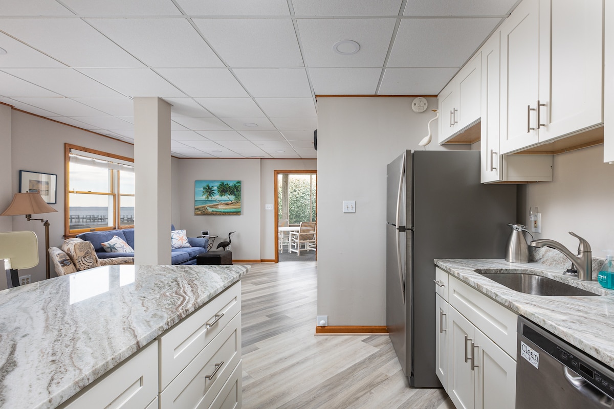 Experience waterfront living in Duck, NC! This 4BR, 4BA home offers stunning views from nearly every room and a private downstairs suite with its own kitchen and living area. Enjoy the incredible sunsets from the screened-in porch, backyard patio, and large yard. Just a short walk to the beach and close to downtown Duck's shops and restaurants, this tastefully decorated retreat is your perfect coastal getaway! *NEW FOR 2026 - Expanded backyard area with outdoor kitchen, fire pit and hot tub!