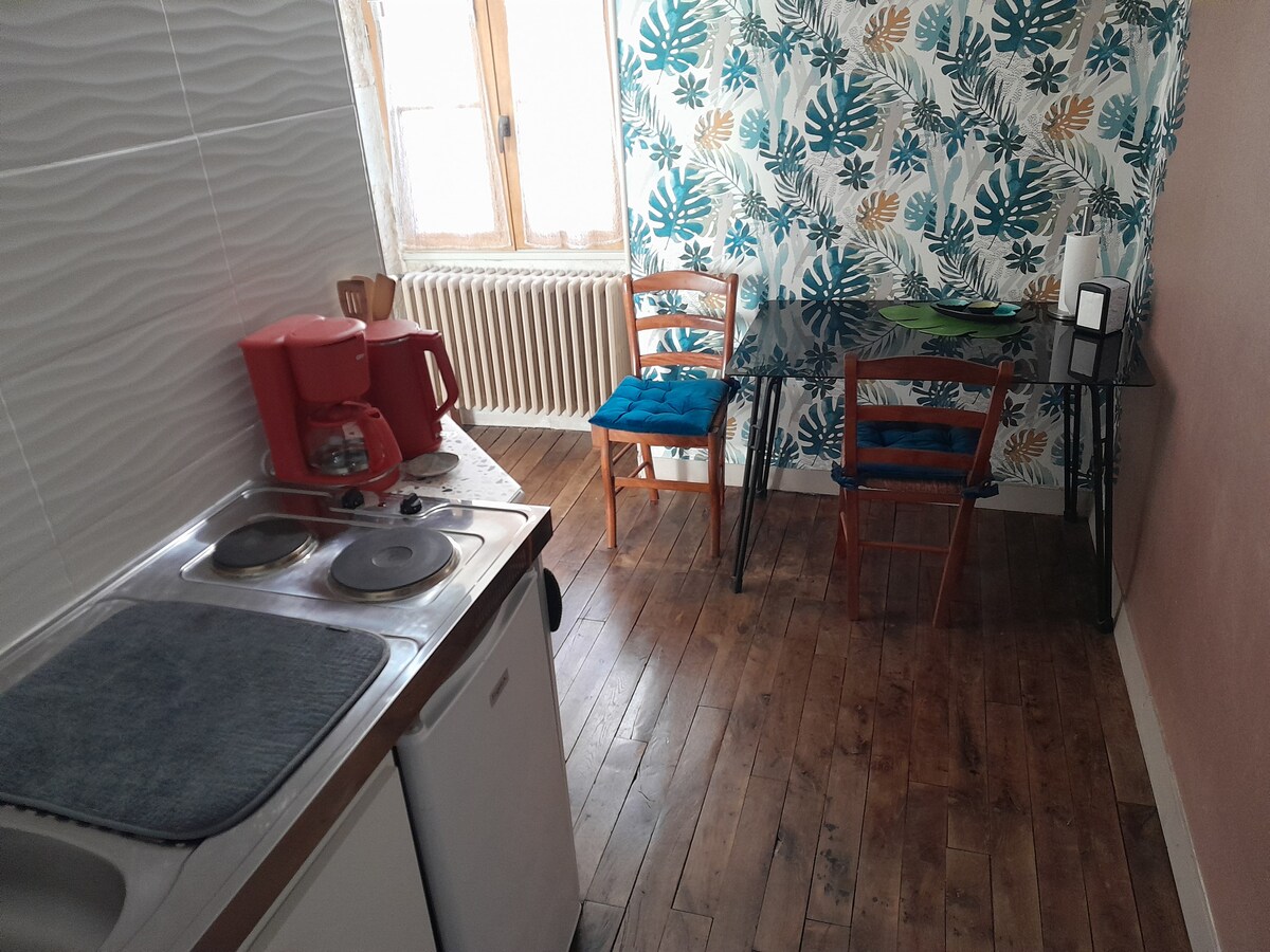 Cazibədarlıqla dolu böyük bir ev Mélusine-də xoş studiya. Günəşli otağınız gözəl bir bağa baxır. Şəxsi hamam otağınızda və balaca mətbəxinizdə çoxəsrlik parket döşəmə gəzinti duşu, daş və müasir və bədii dizayndan ibarətdir. Açılışda ayrıca tualet. Dəsmallar və yataq dəsti təmin edilir. Bağda sizi 15 m2 istirahət sahəsi gözləyir. 200 metr məsafədə qatar stansiyası, 2 restoran, mağaza və tarixi mərkəz.