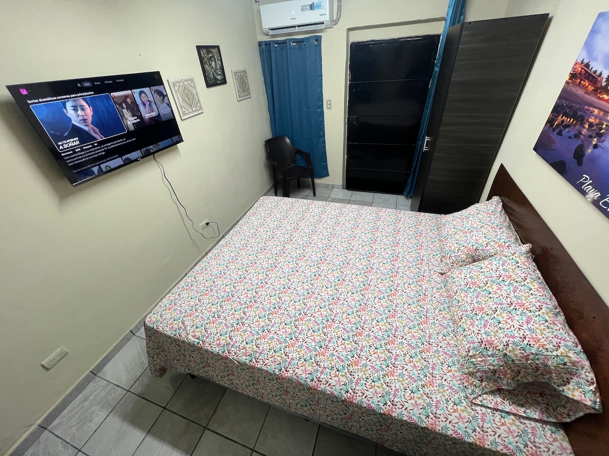 Bu sakit və mərkəzi yaşayış yerinin sadəliyindən zövq alın. Otaqda Netflix və hbo Max ilə ikinəfərlik Ağıllı TV var, öz vanna otağı, kondisioner,internet, döşəkağı-dəsmal kağız dəsmalları daxildir. paylaşılan ərazidə soyuducu. Əlavə xərc üçün paltaryuyan və quruducu mövcuddur (5 $) Mövqe ticarət mərkəzləri, restoranlar, apteklər, supermarketlər, banklar, Atm və digər yerlər üçün əlçatandır.