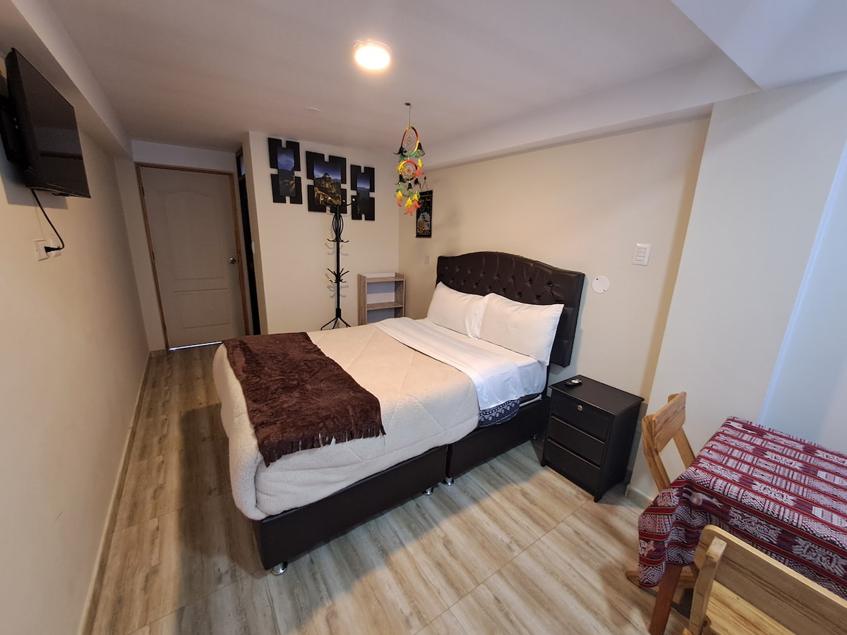 Bu müasir məkan sizə bir çox füsunkar təfərrüatlar təklif edir. 3-cü mərtəbədə (3-cü mərtəbə) rahat və komfortlu otaqda müasir ayrıca hamam otağı, 24 saat isti su, ağıllı televizor, yüksək sürətli internet (300 Mb) var. İş üçün geniş məkan. Biz Kuskonun əsas meydanından 3 blok, turistik yerlərə, ən yaxşı restoran və barlara, bazarlara və suvenir dükanlarına yaxın olan Korycancha (Inca Temple of the Sun) iki blokuq.